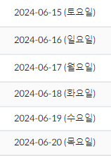 주간 요일을 표현해줘야 하는 방법은 아래와 같다.