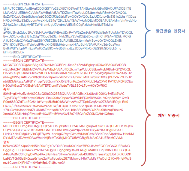 발급받은 도메인 인증서와 체인인증서의 내용이 합쳐져 있는 것을 확인 할 수 있습니다.