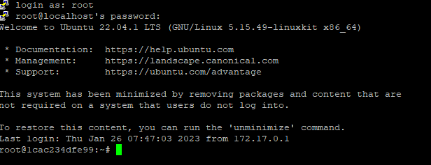 root@1cac234dfe99:/# ssh root@localhost -p22