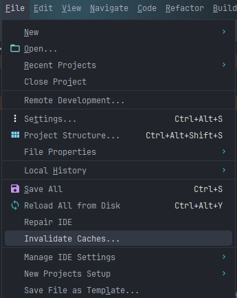 인텔리제이에서의 문제라고 보고 캐쉬를 초기화 해봤더니 해결 되었다.